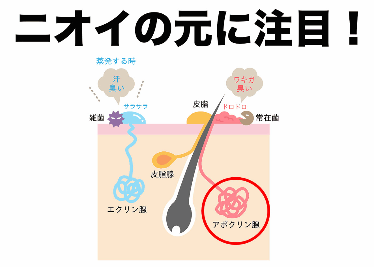 クサいニオイの元であるアポクリン汗腺に